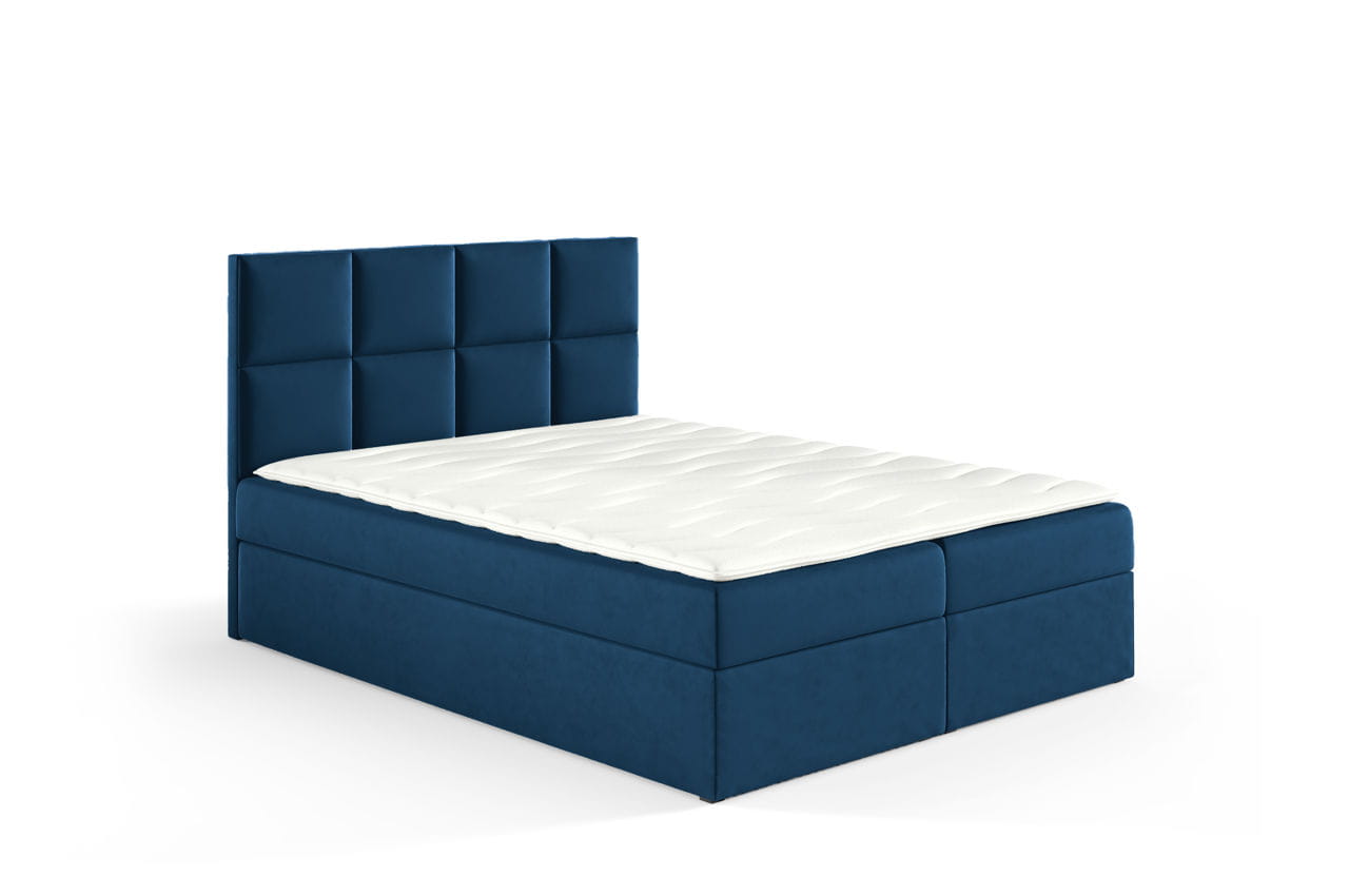 Łóżko kontynentalne z pojemnikiem Kleo 200x200cm granatowy - tkanina Riviera 81