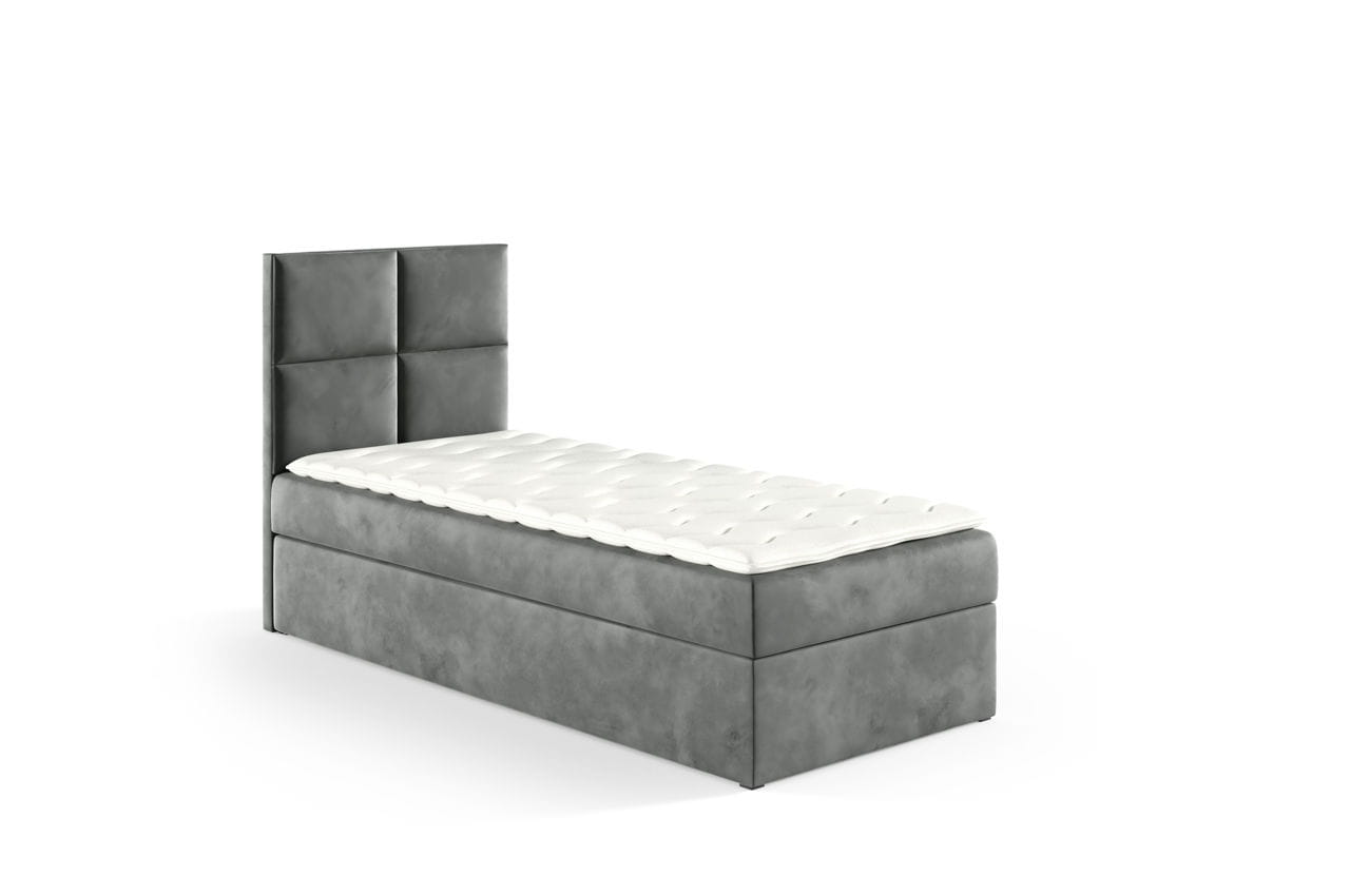 Łóżko kontynentalne z pojemnikiem Kleo 90x200cm szary - tkanina Riviera 91