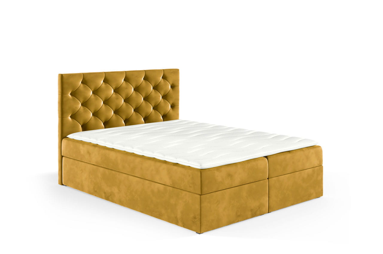 Łóżko kontynentalne z pojemnikiem Lara 120x200cm musztardowy - tkanina Riviera 41