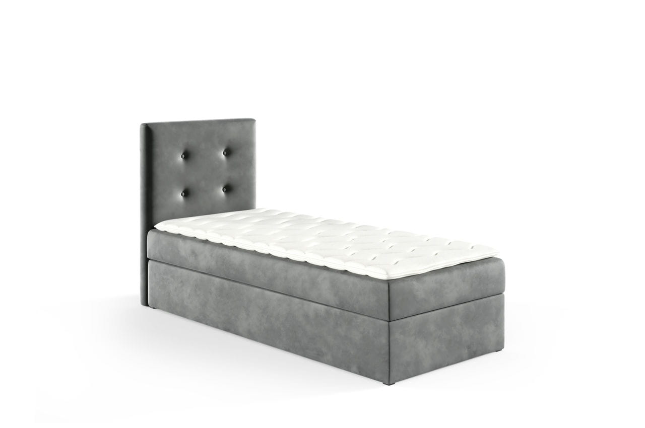 Łóżko kontynentalne z pojemnikiem Lino 90x200cm szary - tkanina Riviera 91
