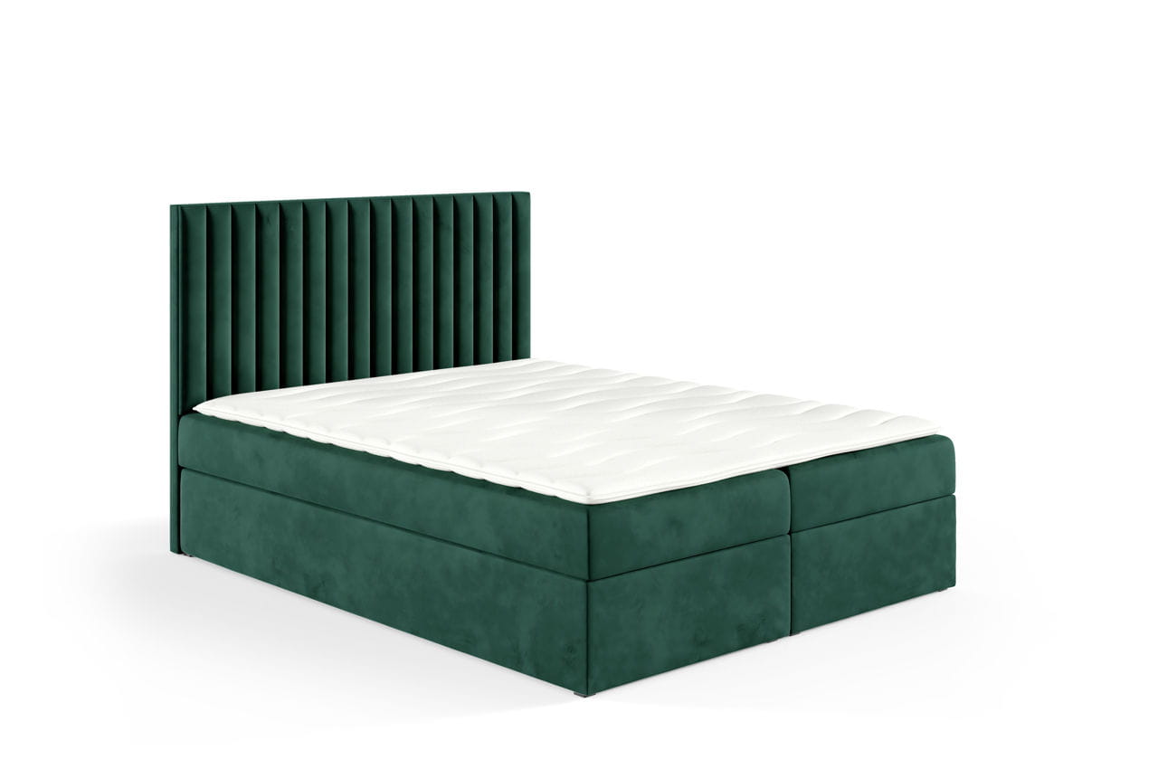 Łóżko kontynentalne z pojemnikiem Lira 140x200cm zieleń - tkanina Riviera 38