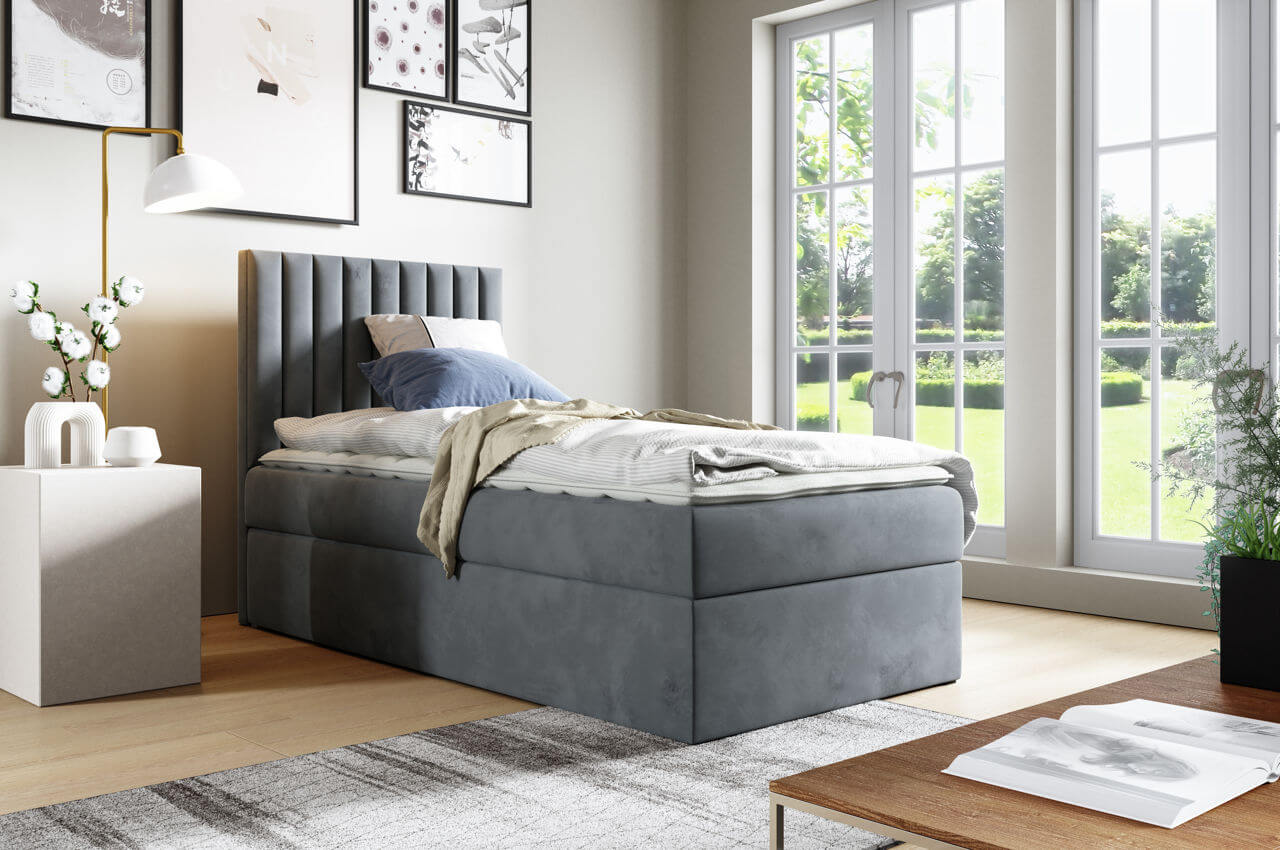 Łóżko kontynentalne z pojemnikiem Lira 90x200cm szary - tkanina Riviera 91