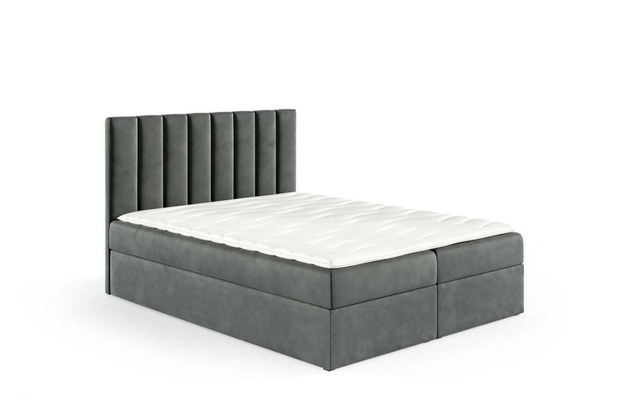 Zainwestuj w jakość snu i styl swojego wnętrza – wybierz nasze łóżko kontynentalne Nila z zagłowiem w pionowe panele tapicerowane i ciesz się komfortem każdego dnia!
