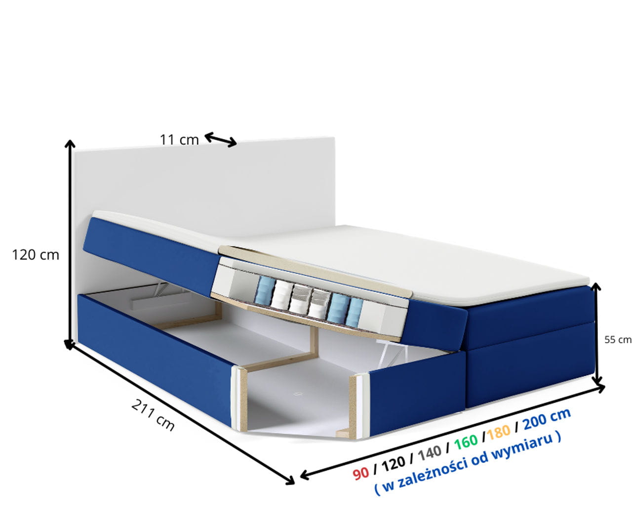 - Długość całkowita łóżka: 211cm