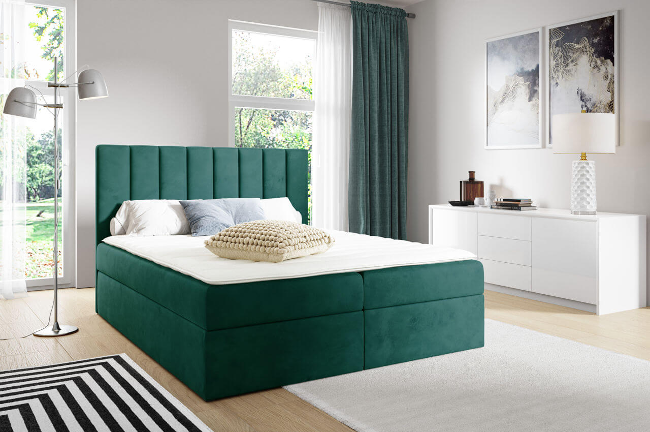Łóżko kontynentalne z pojemnikiem Nila 200x200cm zieleń - tkanina Riviera 38