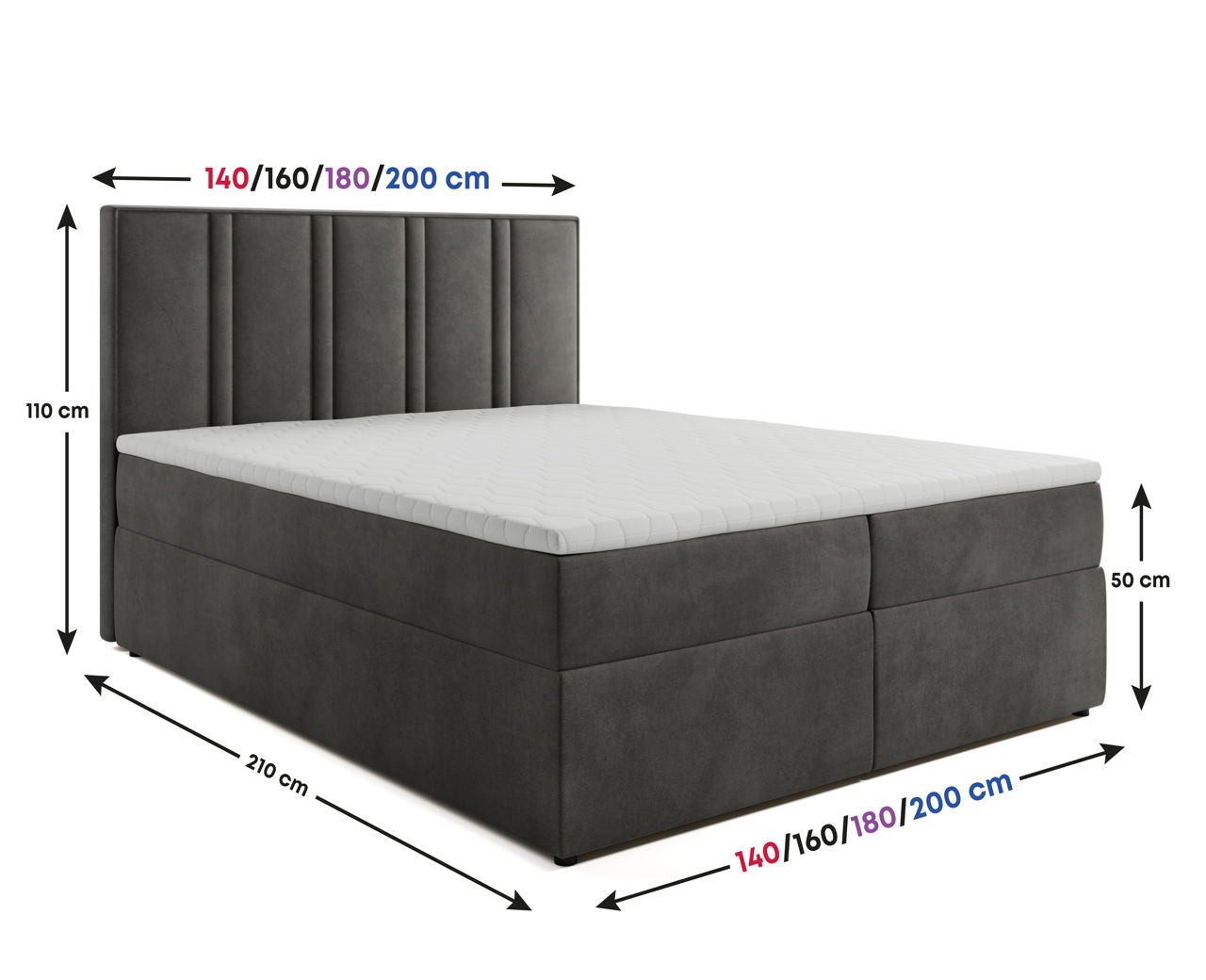 Łóżko kontynentalne z pojemnikiem Ortez 140x200 tkanina Riviera/Monolith
