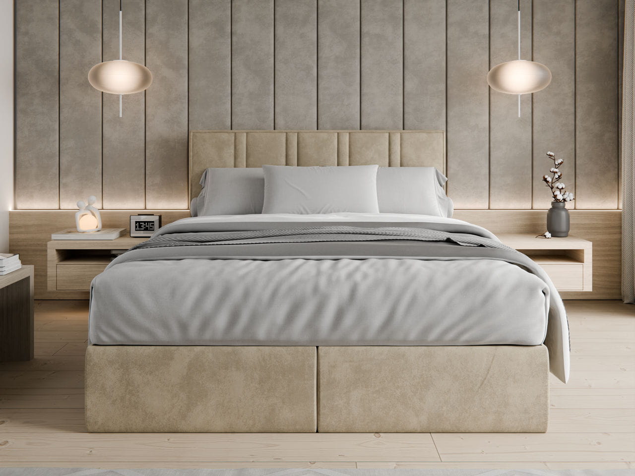 Zagłowie: Z pionowymi przeszyciami dodaje łóżku nowoczesnego charakteru. To eleganckie rozwiązanie, które doskonale wkomponuje się w każdą aranżację sypialni.