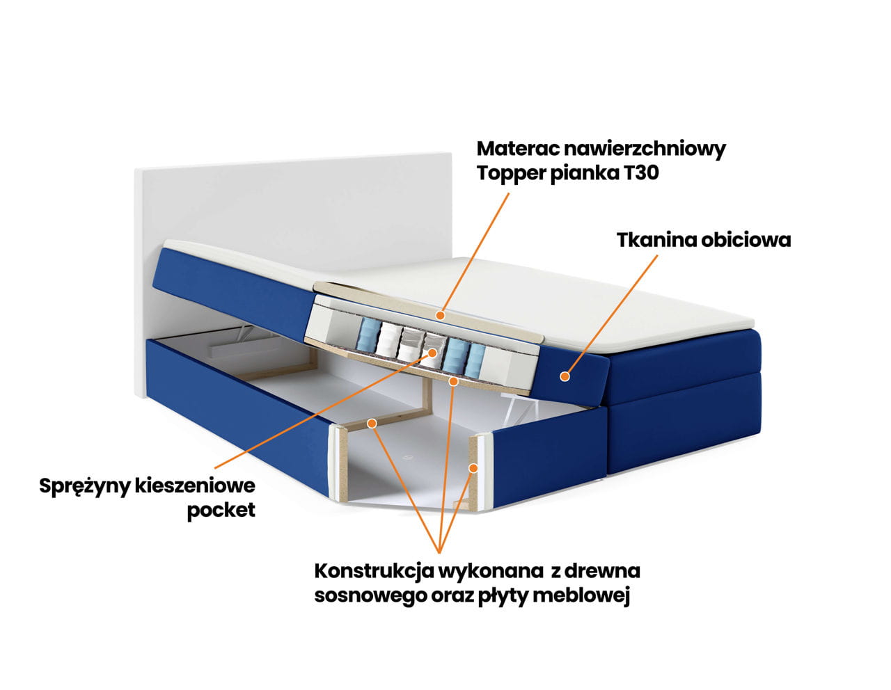 Materac bazowy: wykonany ze sprężyn kieszeniowych typu pocket w standardzie.