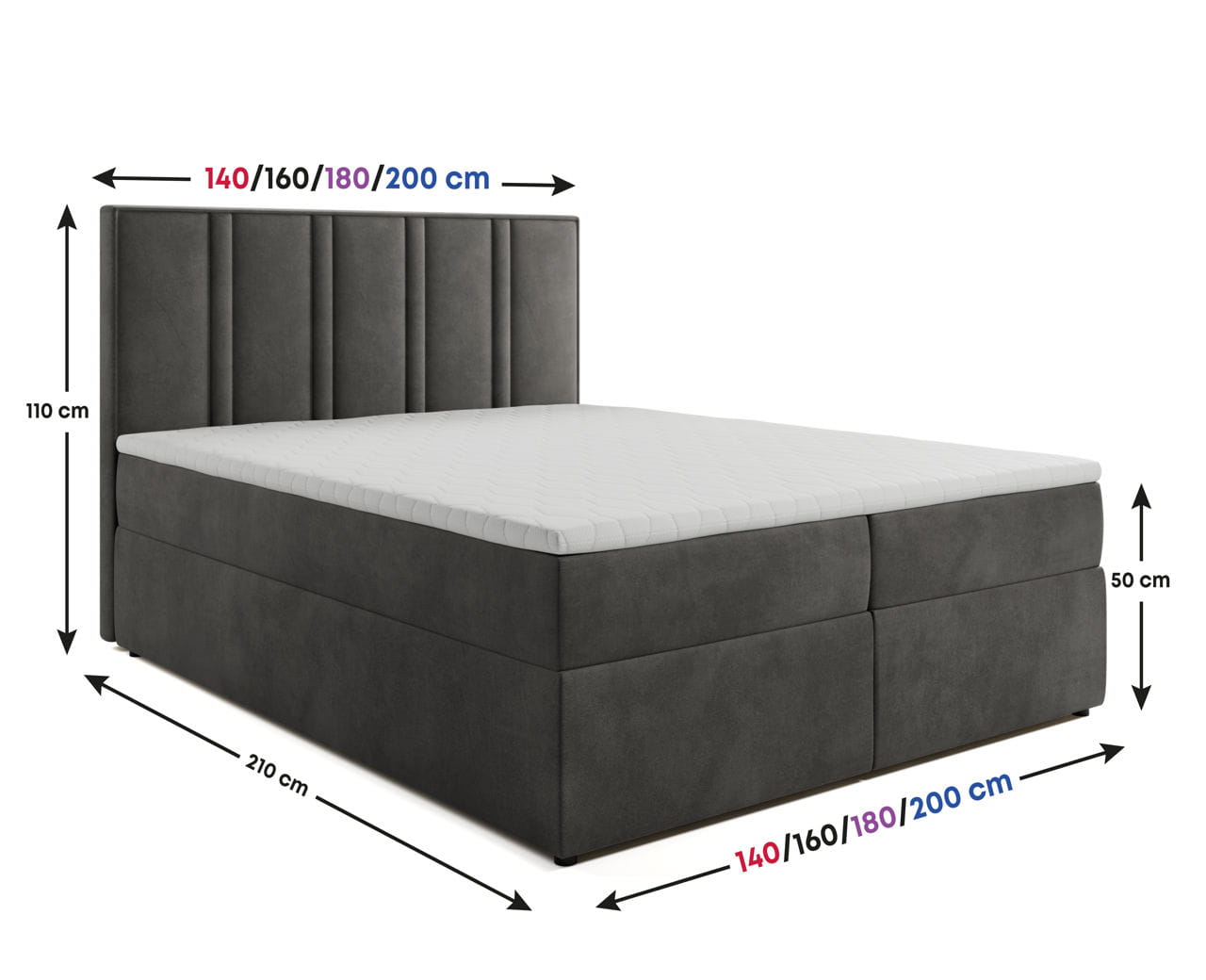 - Długość całkowita łóżka: 210cm