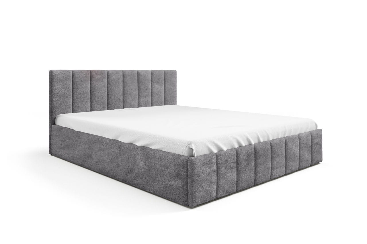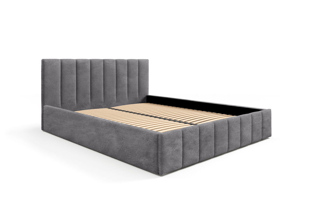 Stylowe i eleganckie łóżko tapicerowane Lena z zagłówkiem z pionowymi przeszyciami, które nadają mu nowoczesny charakter i zapewniają wygodne oparcie. Cała konstrukcja jest solidnie wykonana i obita wysokiej jakości, miękką tkaniną typu boucle, który dodaje wnętrzu luksusu.