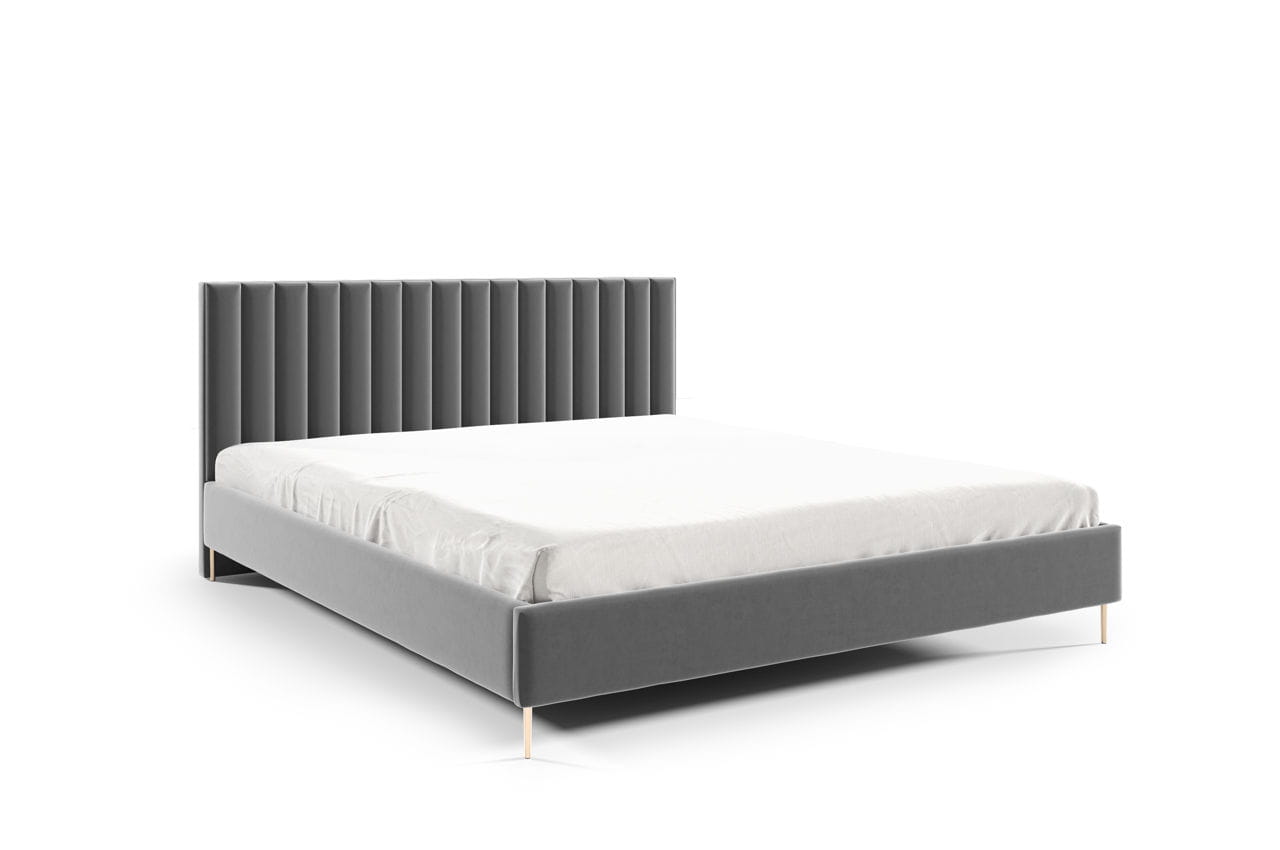 Stylowe i eleganckie łóżko tapicerowane Lira z zagłówkiem z pionowymi gęstymi przeszyciami, które nadają mu nowoczesny charakter i zapewniają wygodne oparcie. Cała konstrukcja jest solidnie wykonana i obita wysokiej jakości, miękką tkaniną typu velvet, która dodaje wnętrzu luksusu.