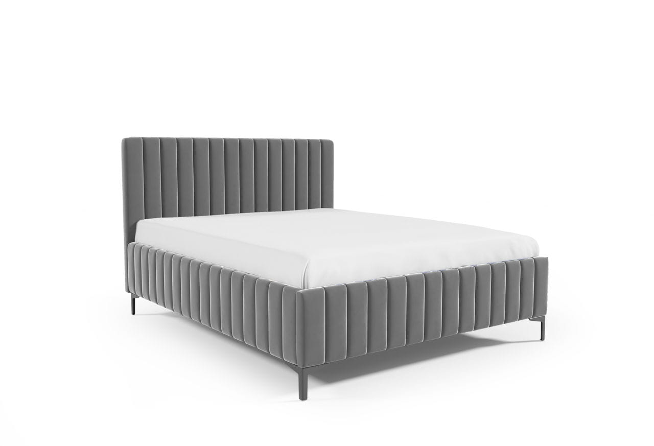 Zagłowie: Atrakcyjne, z pionowymi przeszyciami zagłowie dodaje łóżku nowoczesnego charakteru, a miękka tapicerka zapewnia wygodę podczas odpoczynku czy czytania.