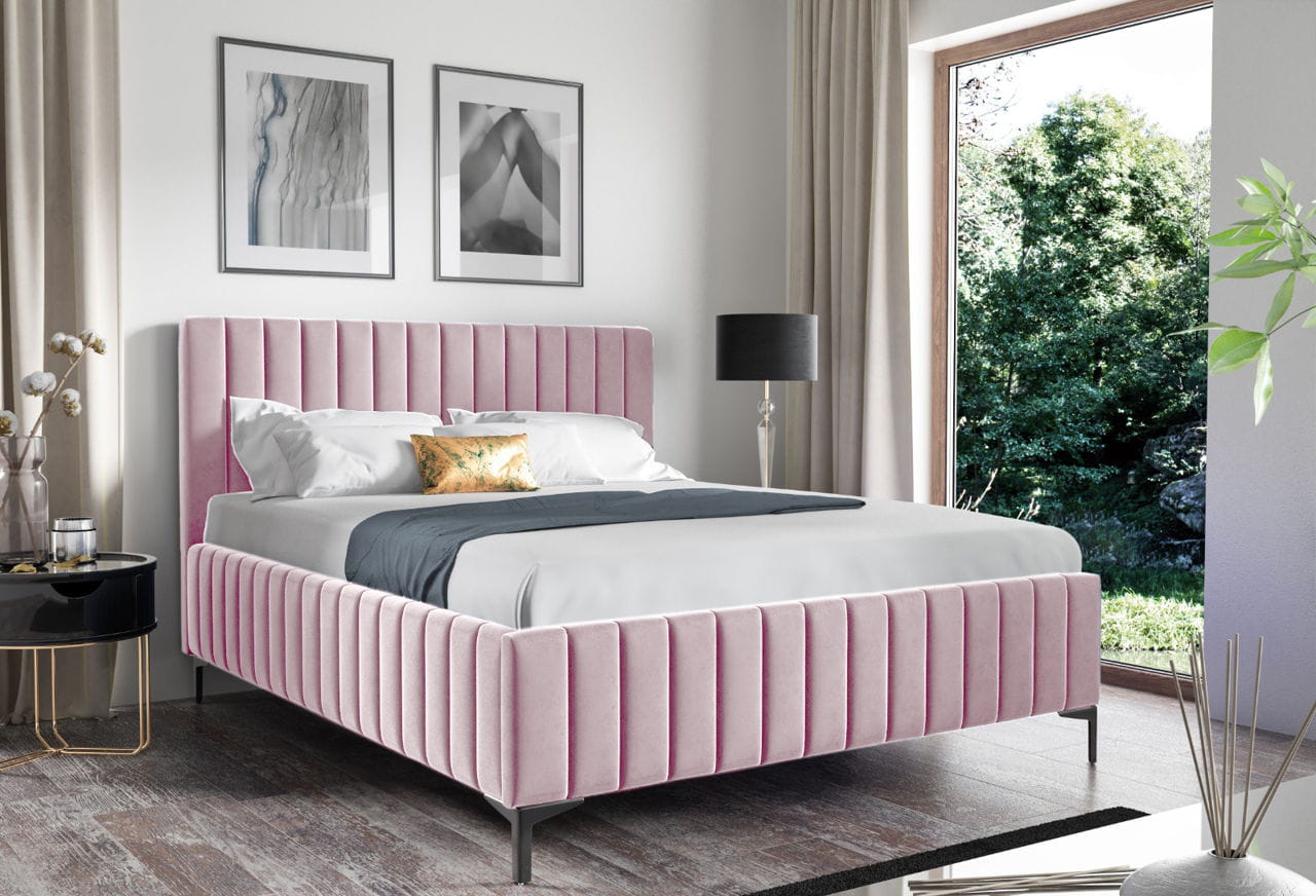 Łóżko tapicerowane na nóżkach Weronika 160x200 pudrowy róż - Trinity 19