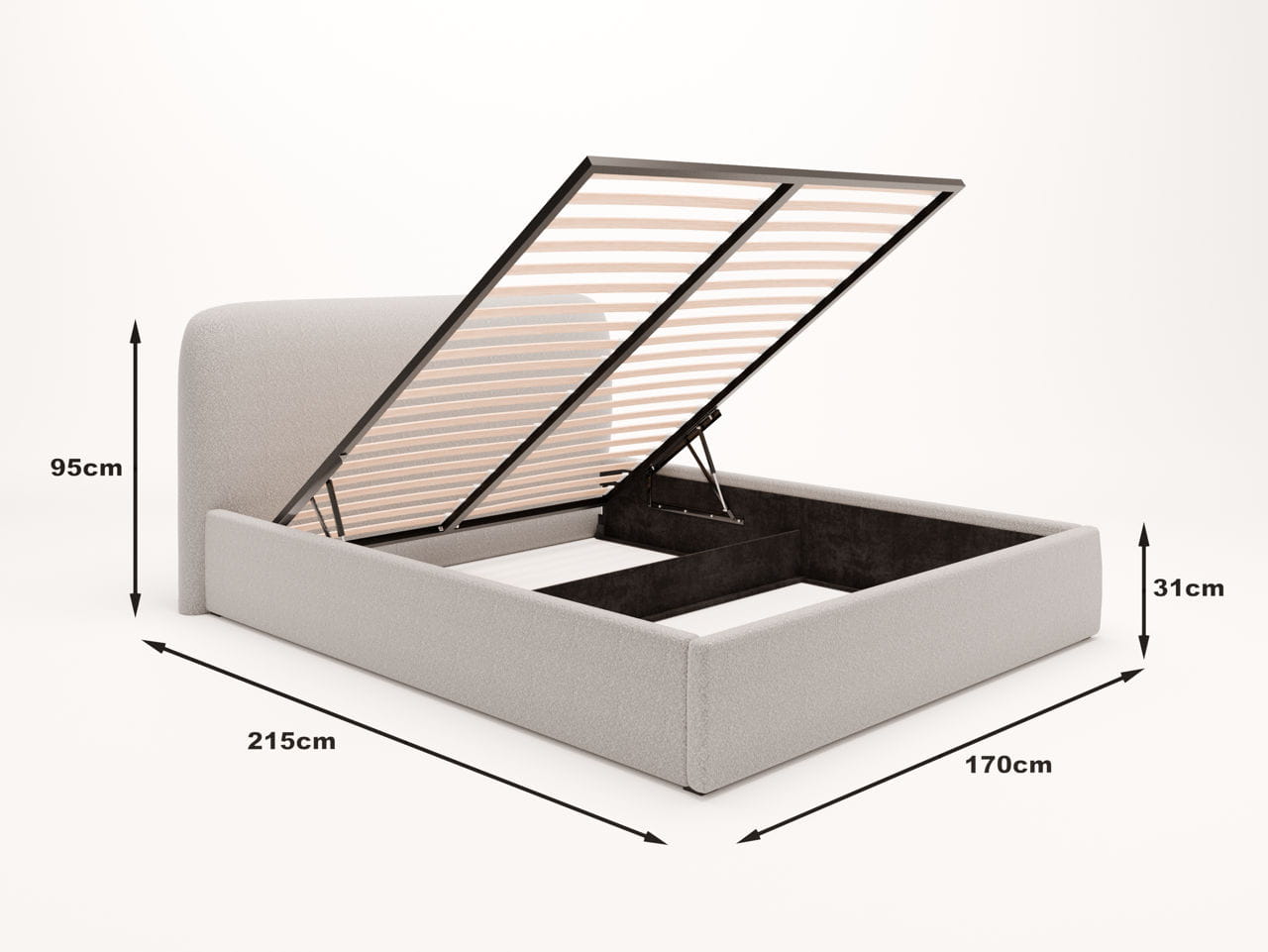 Łóżko tapicerowane z pojemnikiem 120x200 Jimi jasny szary boucle Lambi 11