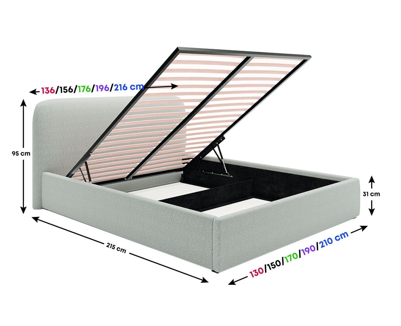 - Wysokość ramy łóżka 31cm