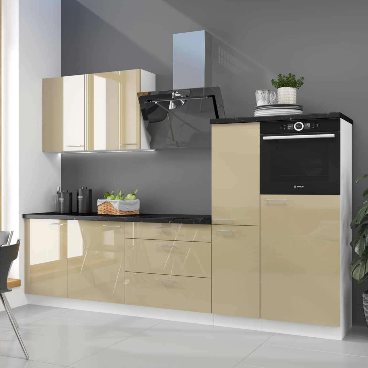 Meble kuchenne 270cm Lara Cappucino połysk 7 szafek