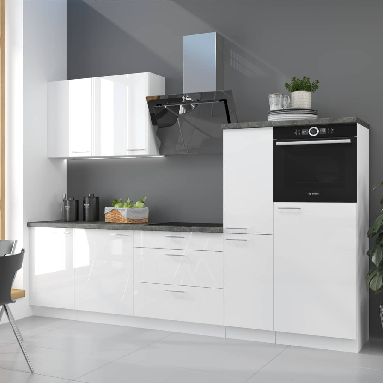 Zestaw mebli kuchennych Lara biały połysk o szerokości 270cm w skład którego wchodzi 7 szafek.