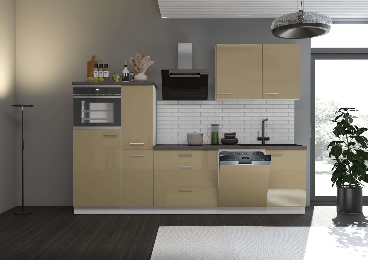 Meble kuchenne 280cm Lara Cappucino połysk 7 szafek+blaty