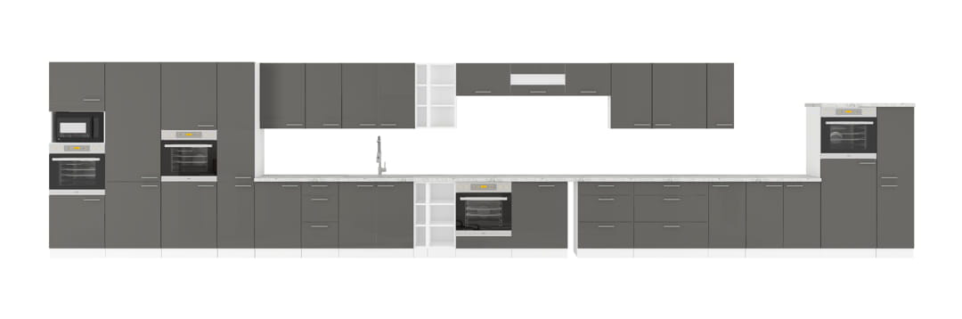 Meble kuchenne 280cm Lara szary połysk 7 szafek+blaty