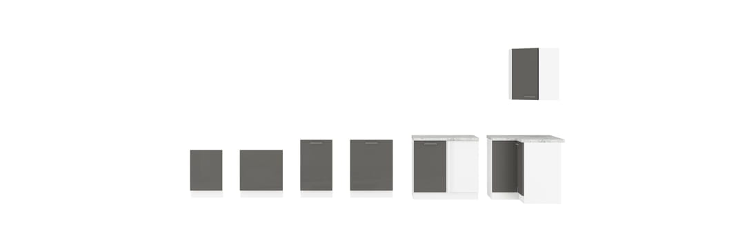 Zestaw mebli kuchennych Lara szary połysk o szerokości 270cm w skład którego wchodzi 7 szafek.