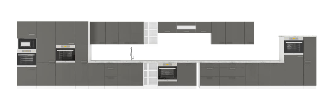 Meble kuchenne 300cm Lara szary połysk 7 szafek