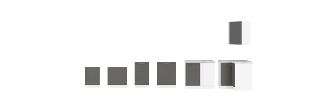 Wszystkie dostępne szafki kuchni Lara szary połysk wraz z wymiarami: