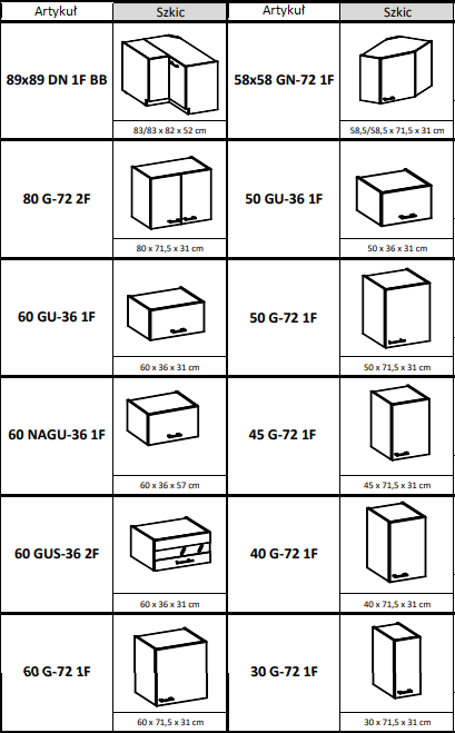 szafki górne: