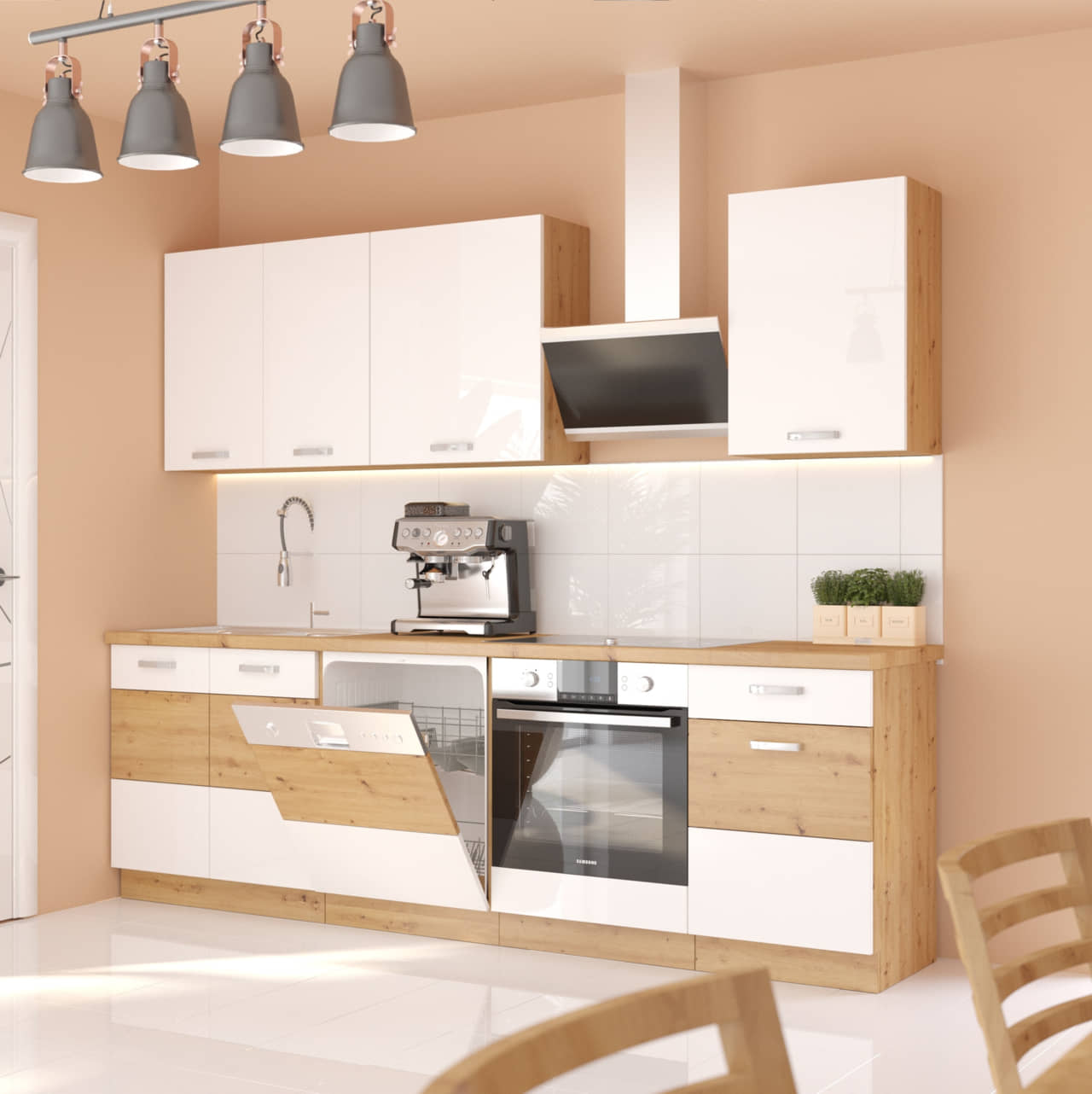 Meble kuchenne Artisan biały połysk 250cm 7 szafek