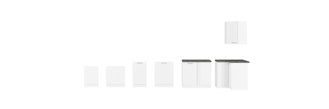 Wszystkie dostępne szafki kuchni Lara biały połysk wraz z wymiarami: