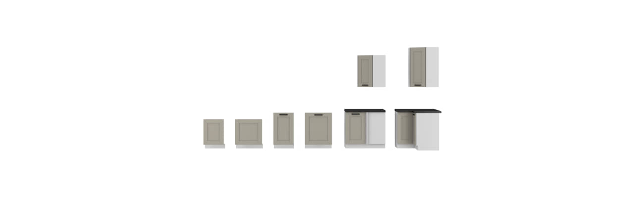Wszystkie dostępne szafki kuchni Clay grey/ biały: