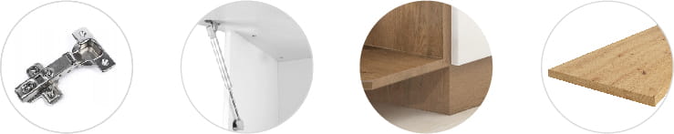 - zawiasy topowych producentów m.in. GTV, REJS z systemem cichego domykania w standardzie(nie dotyczy szafek narożnych)