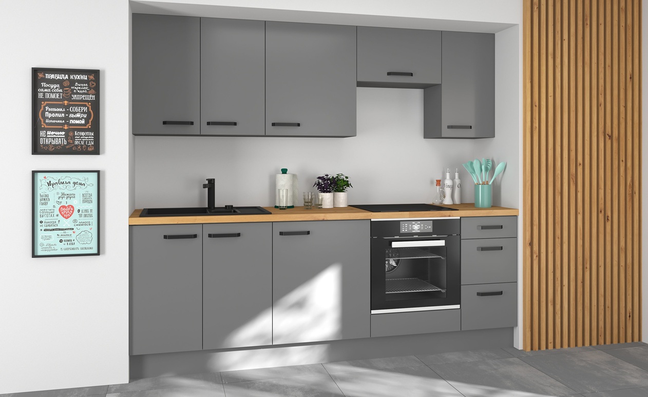 Zestaw kuchenny Nessa o długości 240cm w skład którego wchodzi 8 szafek.