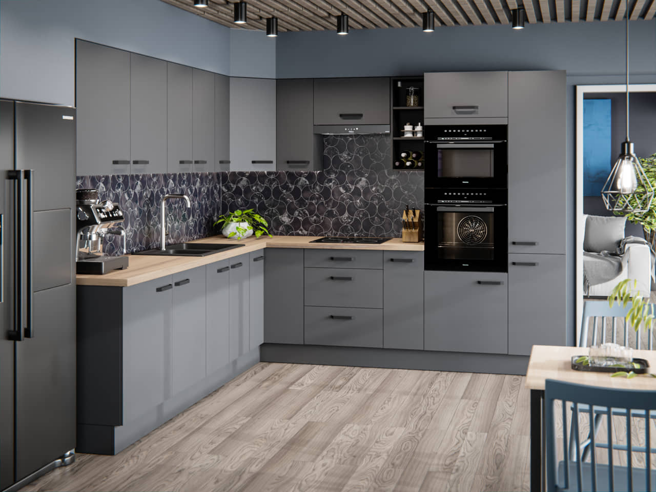 Meble kuchenne Nessa Antracyt 250 na 280cm z blatem