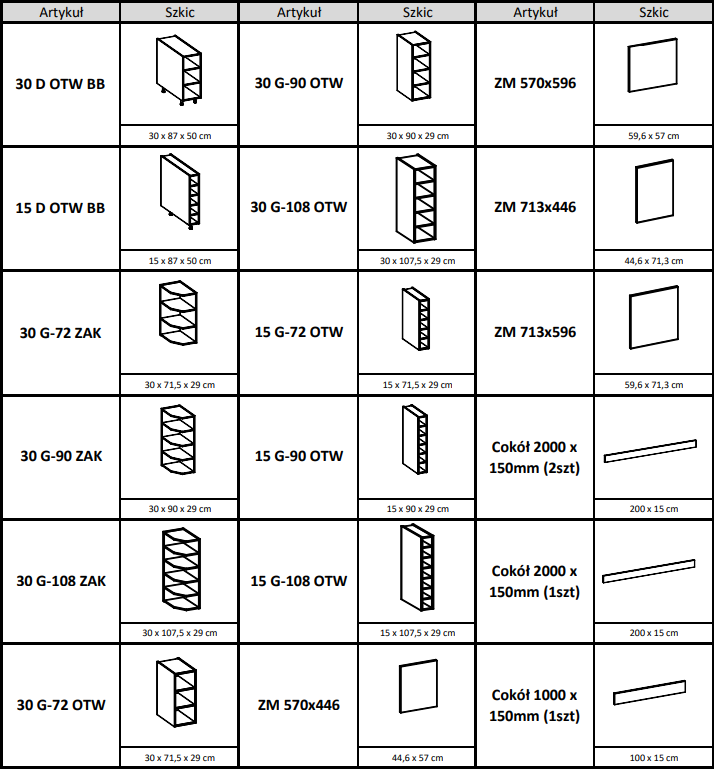- szafki dolne nie posiadają cokołu w zestawie(cokół to oddzielny produkt),