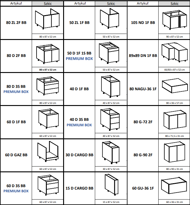 - szafki dolne nie posiadają blatu,