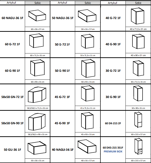 - szafki sprzedawane w paczkach wraz z czytelną instrukcją montażu oraz wszystkimi potrzebnymi okuciami,