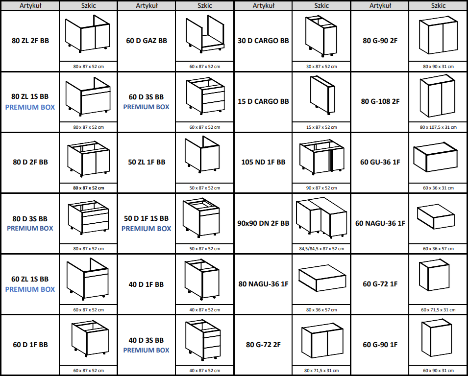 - szafki dolne nie posiadają blatu,