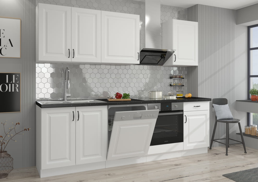 Meble kuchenne Stilo biały/biały 250cm z blatem