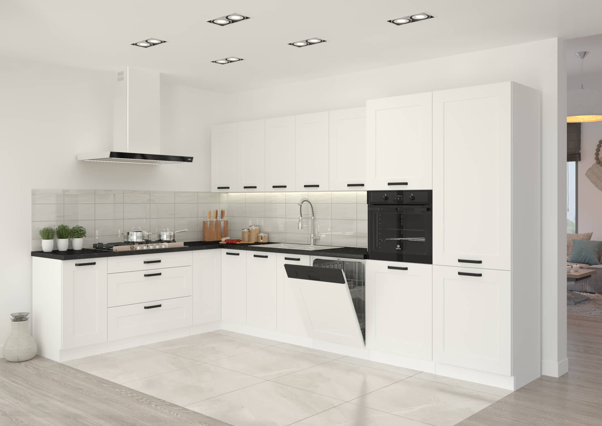 Meble kuchenne narożne Luna biały/biały 2,1m na 3,5m