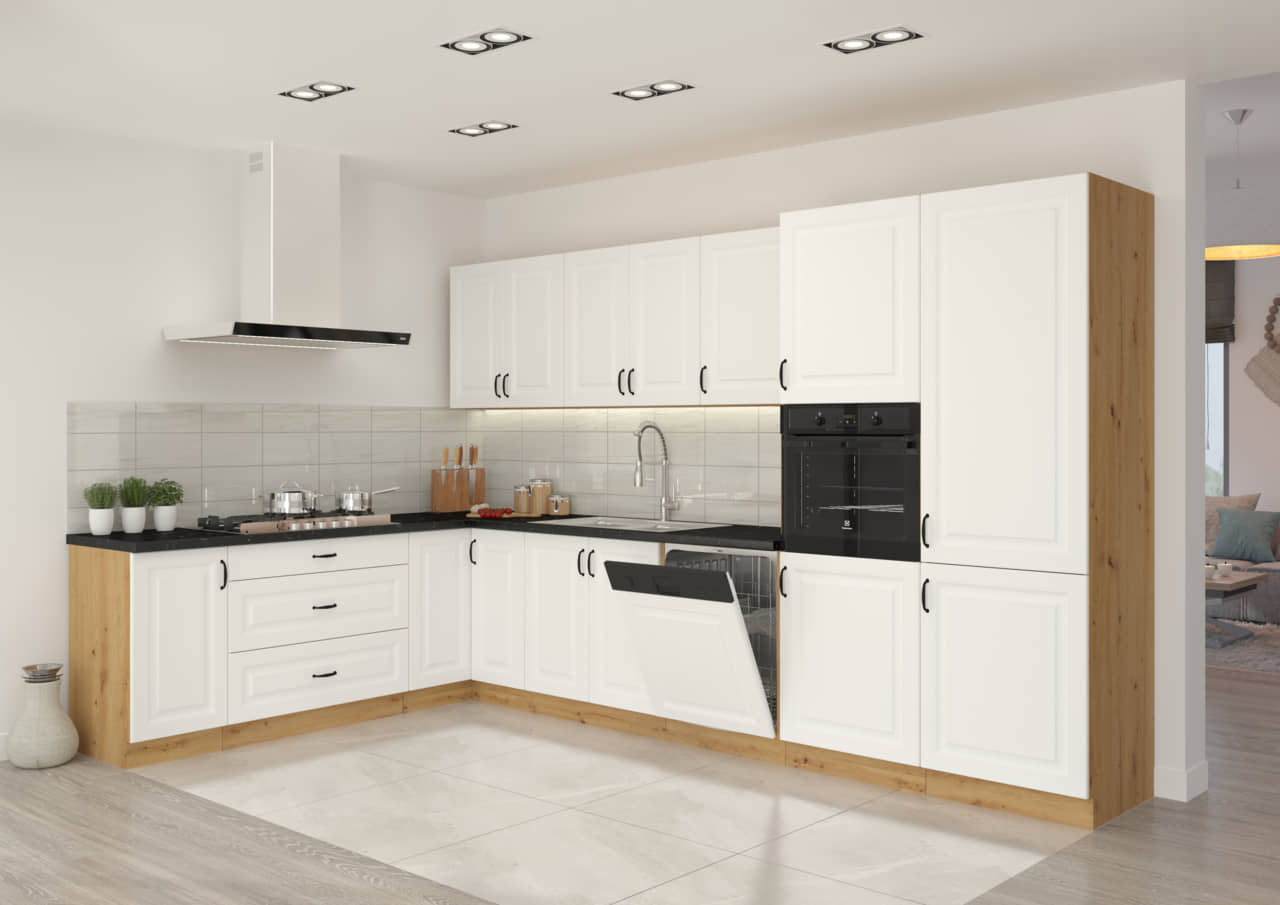 Meble kuchenne narożne Stilo biały/artisan 2,1m na 3,5m