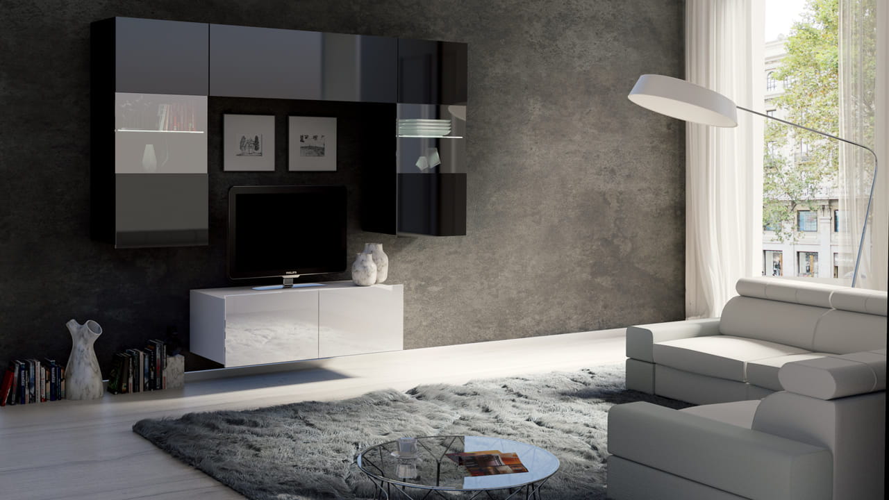 Meblościanka Calabrini 10 biały połysk/czarny połysk