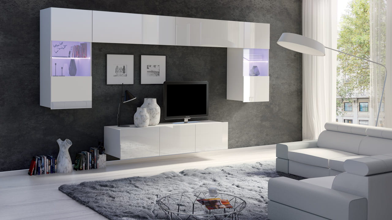 Meblościanka Calabrini 2 biały/biały połysk
