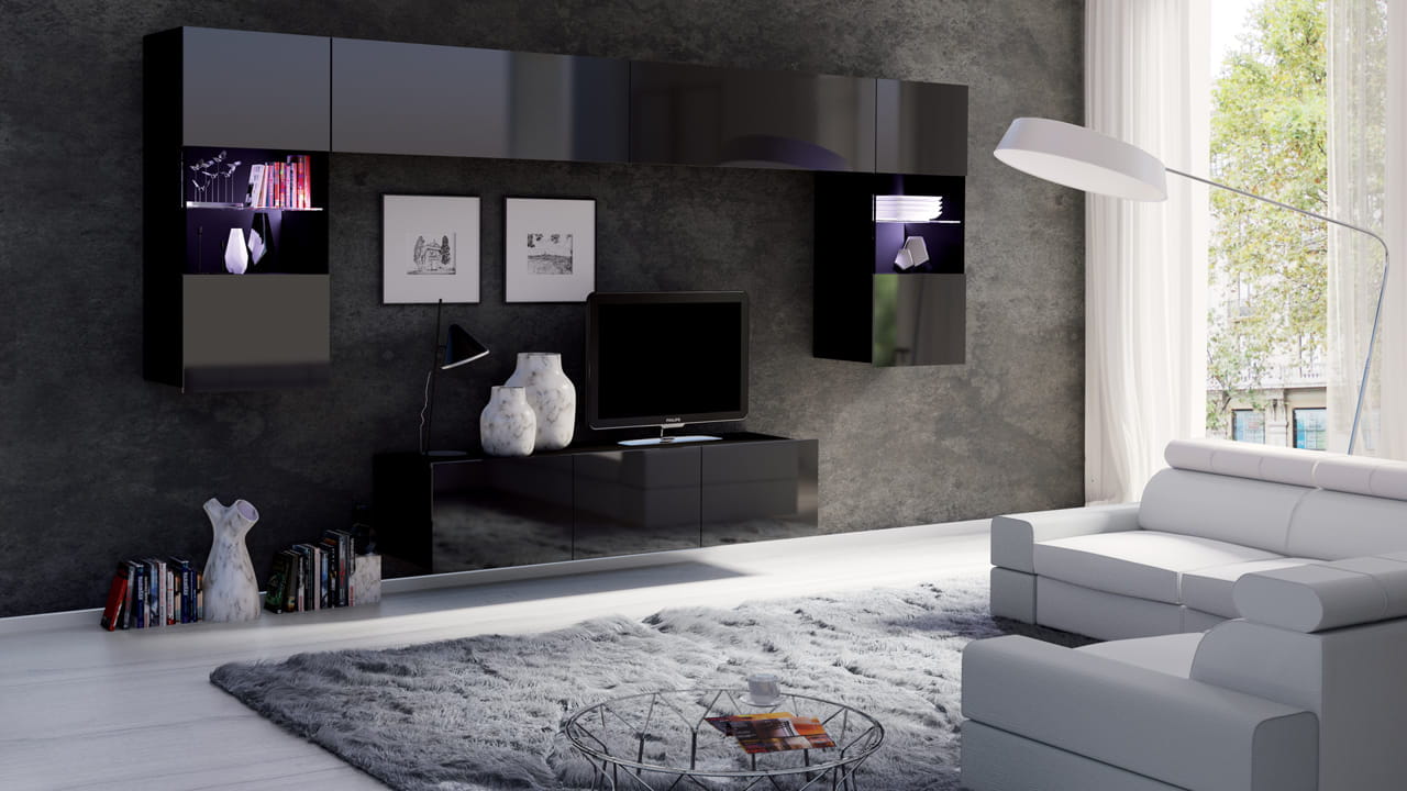 Meblościanka Calabrini 2 czarny/czarny połysk