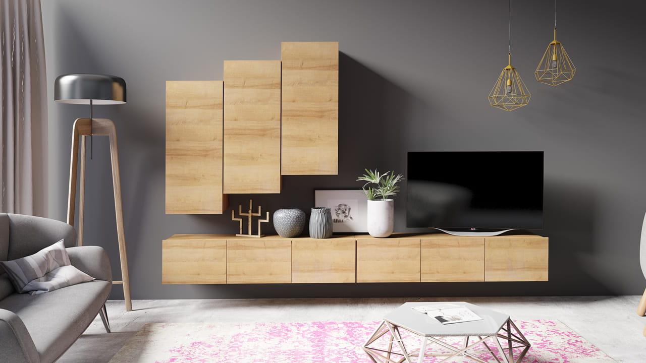 Chcesz spotęgować relaksujący nastrój w swoim salonie? A więc postaw na harmonijną dekorację. Niezależnie od tego, czy wybierasz meble z tej samej kolekcji, czy łączysz różne style z Mebelzone możesz stworzyć piękną kompozycję. Meblościanka Calabrini idealnie nadaje się do umeblowania części wypoczynkowej. Z wysokiej klasy wykończeniem zapewnia optymalną organizację sprzętu. Jej modny i praktyczny design pozwoli Ci zaoszczędzić miejsce i przechowywać rzeczy osobiste, takie jak książki, płyty DVD, przedmioty dekoracyjne zawsze w zasięgu ręki. Połyskujące wykończenie odbije światło i wprowadzi do Twojego wnętrza odrobinę nowoczesności.