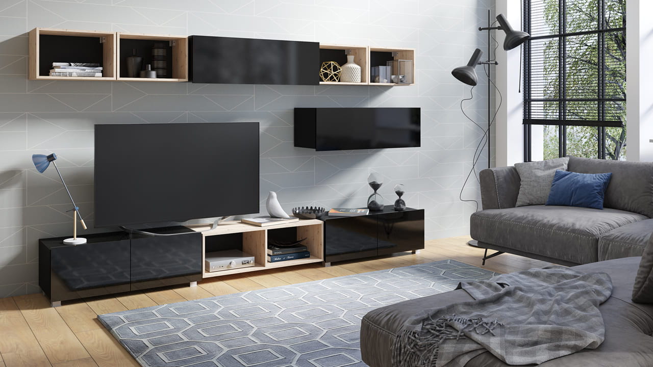Meblościanka Calabrini 26 czarny połysk/dąb artisan