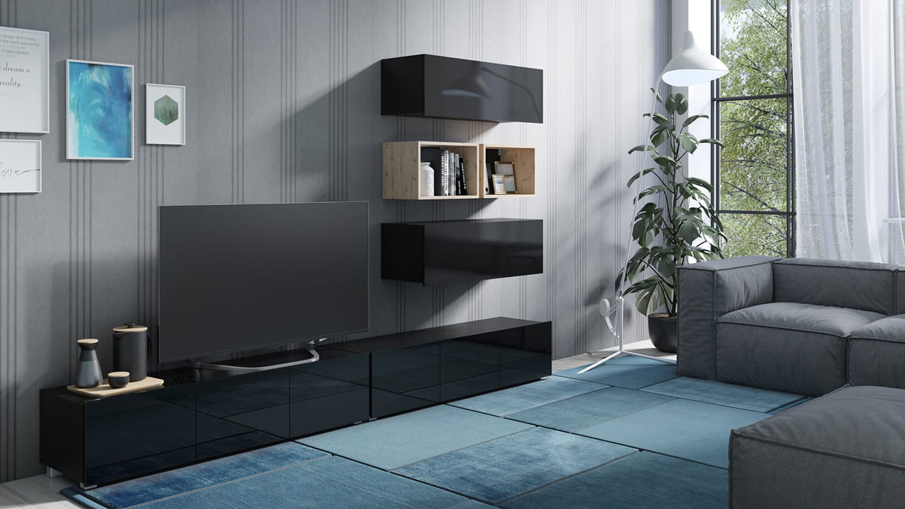 Meblościanka Calabrini 27 czarny połysk/dąb artisan