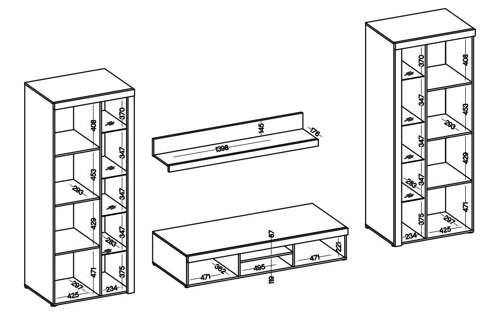 Elegancka meblościanka Rumba XL daje możliwość wzbogacenia Twojej przestrzeni życiowej o atrakcyjną kompozycję mebli, zapewniając dodatkową przestrzeń do przechowywania. Funkcjonalność i atrakcyjność łączą się tutaj, tworząc wysokiej jakości zestaw, który urozmaica otoczenie i przyjemnie przyciąga wzrok w salonie. W skład kolekcji Rumba wchodzi również Meblościanka Rumba, która jest bardziej kompaktową wersją meblościanki Rumba XL, idealnie dopasowując się do mniejszych przestrzeni.