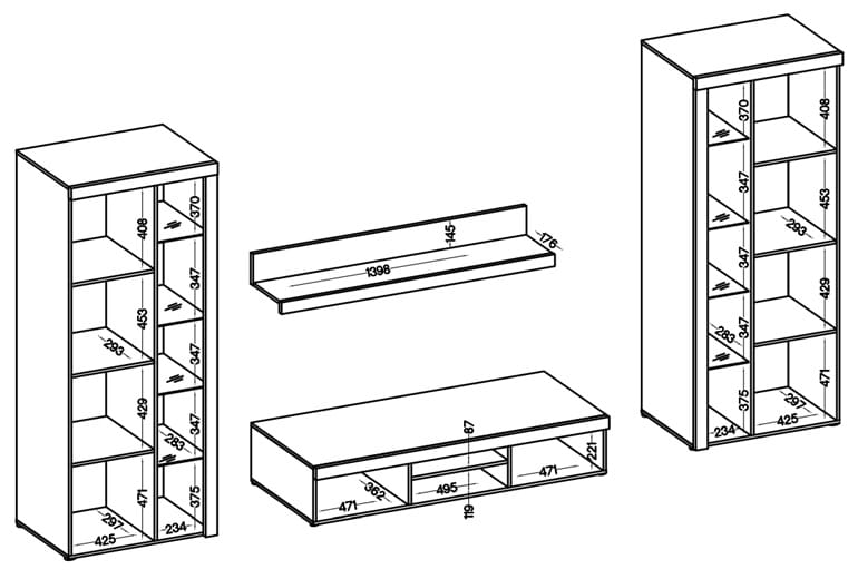 Elegancka meblościanka Rumba XL daje możliwość wzbogacenia Twojej przestrzeni życiowej o atrakcyjną kompozycję mebli, zapewniając dodatkową przestrzeń do przechowywania. Funkcjonalność i atrakcyjność łączą się tutaj, tworząc wysokiej jakości zestaw, który urozmaica otoczenie i przyjemnie przyciąga wzrok w salonie. W skład kolekcji Rumba wchodzi również Meblościanka Rumba, która jest bardziej kompaktową wersją meblościanki Rumba XL, idealnie dopasowując się do mniejszych przestrzeni.