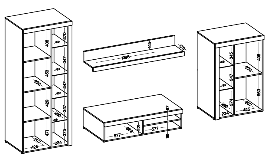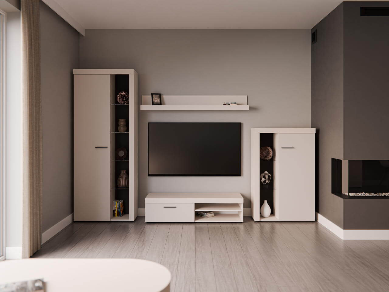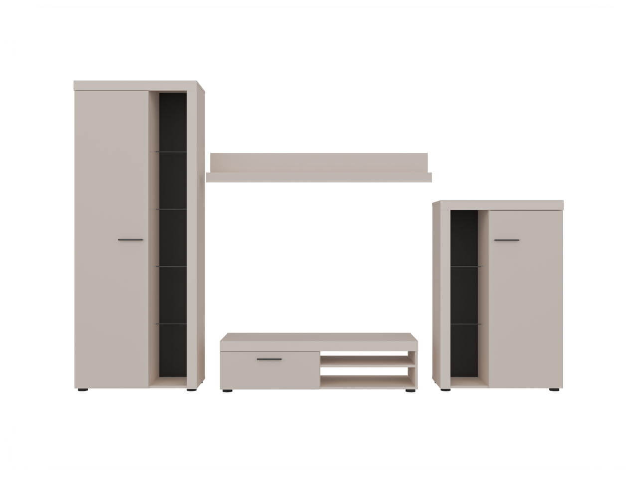Spraw, aby meblościanka Rumba stała się punktem centralnym Twojej przestrzeni życiowej. Poszczególne elementy już same w sobie są atrakcyjne, posiadając subtelny design. Razem tworzą wspaniałą aranżację salonu. W skład meblościanki Rumba wchodzą 2 witryny stojące, stolik RTV oraz półka wisząca. Meblościanka Rumba to wyrafinowana kompozycja z mnóstwem miejsca do przechowywania, przestrzenią na telewizor i odtwarzacz multimedialny.