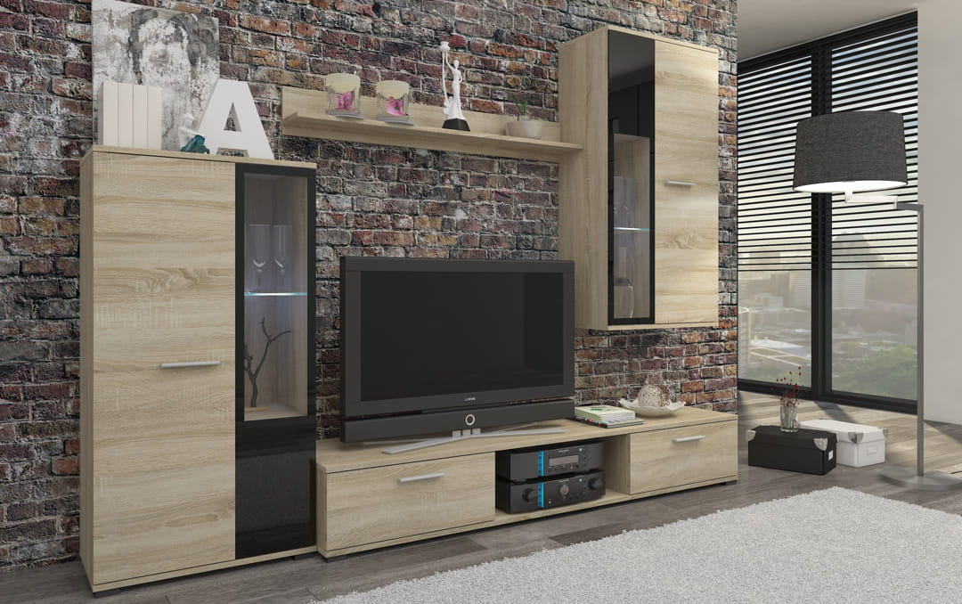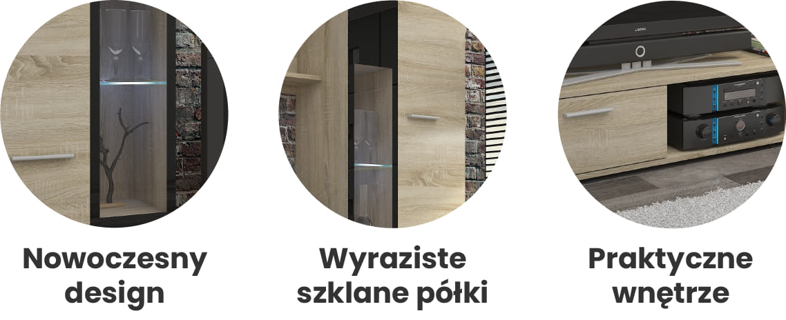- Wysokiej jakości wykończenie melaminowe, matowa struktura, dębowe fronty, dzięki którym Twój salon zyska jednocześnie jasność i kontrast idealny do każdego stylu życia.